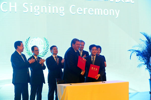 合肥学院党委书记蔡敬民为武尔夫主席颁发了合肥学院“荣誉教授”聘书,武尔夫主席为中德教育合作示范基地六大平台之一的“中德青年创业孵化中心”揭牌,全球中小企业联盟秘书长曹方、中国人民对外友好协会亚欧部部长沈昕、安徽省教育厅厅长李和平、安徽省人民政府外事办公室副主任张力芳等陪同揭牌。他们共同见证了蔡敬民与全球中小企业联盟秘书长曹方先签署双方战略合作协议,同时也见证了全球中小企业联盟秘书长曹方与全球中小企业联盟德国、瑞士、奥地利区执行主席迈克尔·皮茨签署全球中小企业联盟欧洲办公室协议。