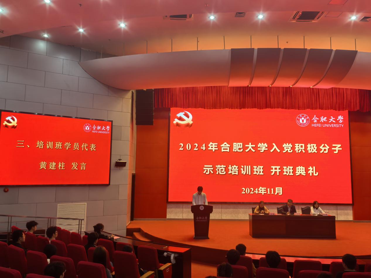 2023级机械电子工程黄建柱同学作为新学员代表作表态发言。他表示,作为新时代新青年,自己深知肩负着实现中华民族伟大复兴的历史重任。他将和同学们一起,以严谨认真的态度对待每一次培训,用党的创新理论武装自己,发扬党的优良传统,努力学习专业知识,提升专业素养和实践运用能力,为建设科技强国贡献才智,奉献青春。
