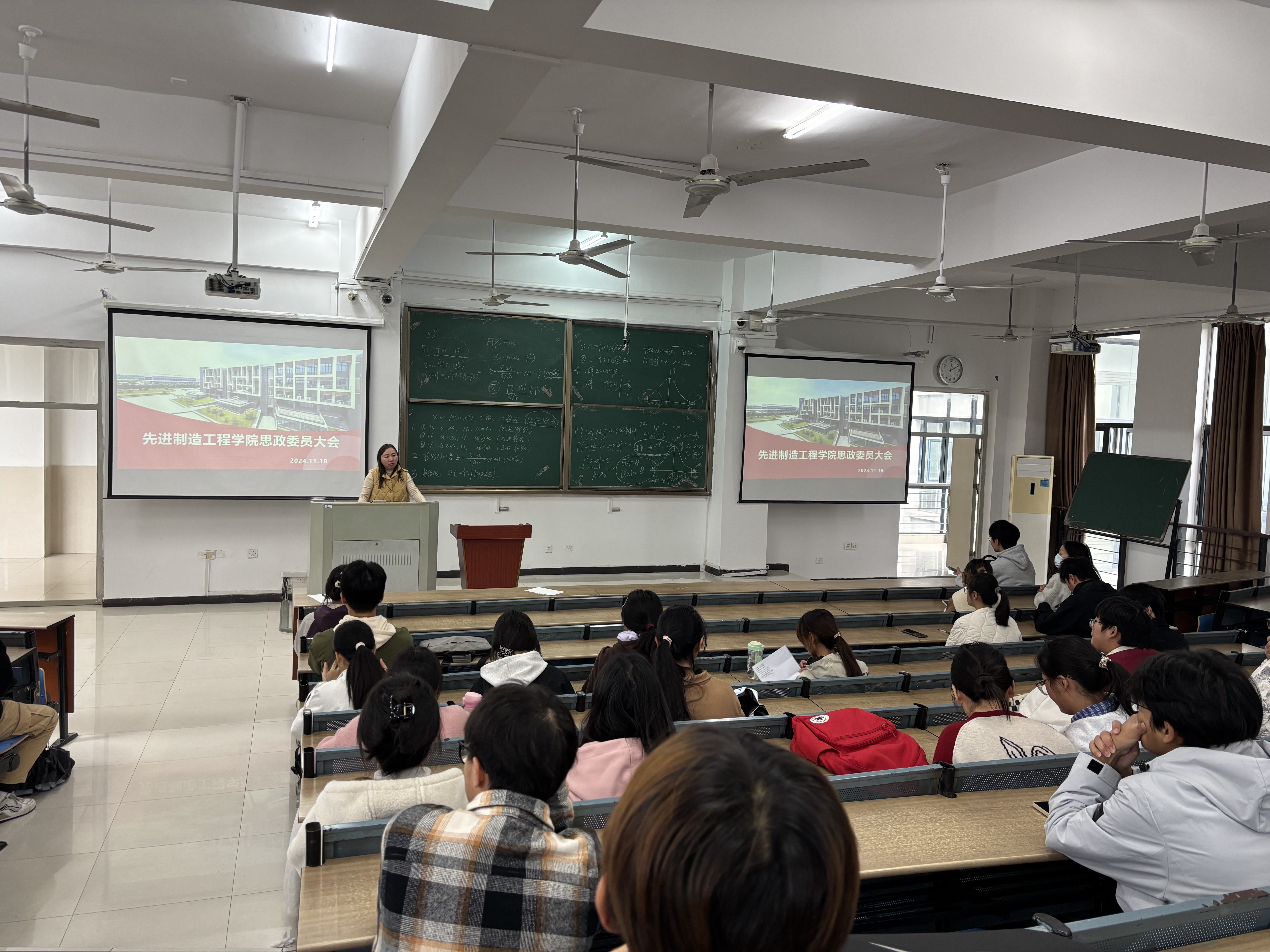 加强学生思想政治教育,推深做实党建工作要求育人实践工作,20241118午,先进制造工程学院召开全体思政委员大会先进制造工程学院党委书记杜娟出席会议并作要求,学院党委副书记、纪委书记蔡灵美及各班级思政委员参会。