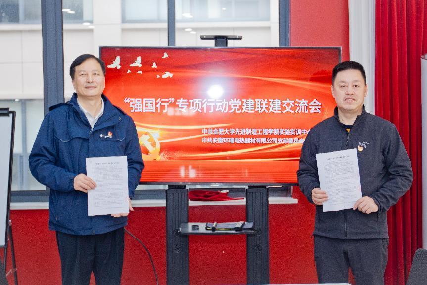 双方围绕校企党建联建开展了座谈交流,环瑞公司相关负责人详细介绍了公司的生产运营状况、技术研发成果以及企业文化建设等方面的成效,让大家深入了解了企业发展态势、发展成果。双方重点围绕如何使党建工作与业务融合达到双融双促展开深入探讨。现场,双方党组织签订“强国行” 专项行动党建联建协议。今后将在组织联建、理论联学、活动联办等方面推进合作,共同开展科研项目攻关,加速科技成果转化,提升企业核心竞争力与创新能力。双方党员在党建活动室共同重温入党誓词。