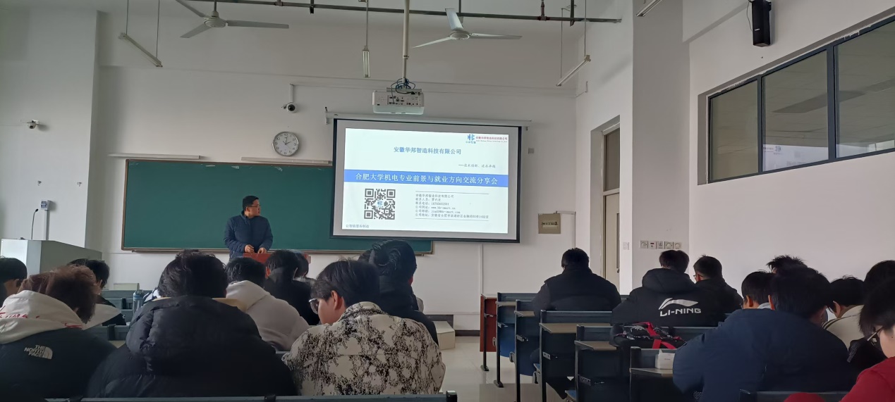 12日,35栋教学楼401教室洋溢着青春的活力与朝气蓬勃的气息,我校优秀校友安徽华邦智造科技有限公司总经理贾代发受邀前来为2024级机械系机电专业学生开展一场热情而又生动的专业认知提升报告