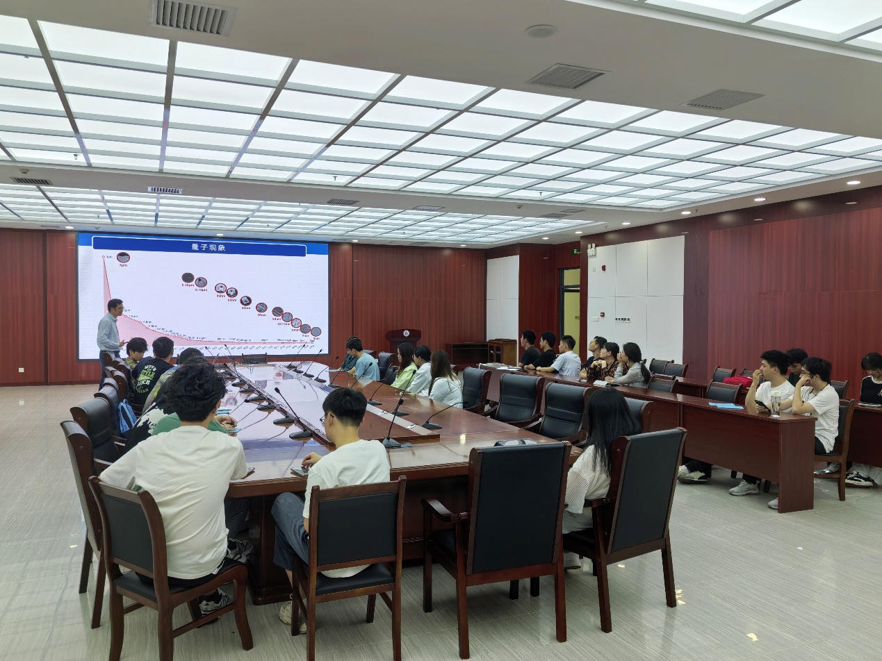 曹刚教授以“半导体量子计算”为主题,从量子现象引入量子计算概念,介绍了其科研团队在“栅控半导体量子点”、“量子比特编码及操控”、“量子比特扩展”等方面取得的丰硕成果,并与参会师生进行了学术交流与研讨。