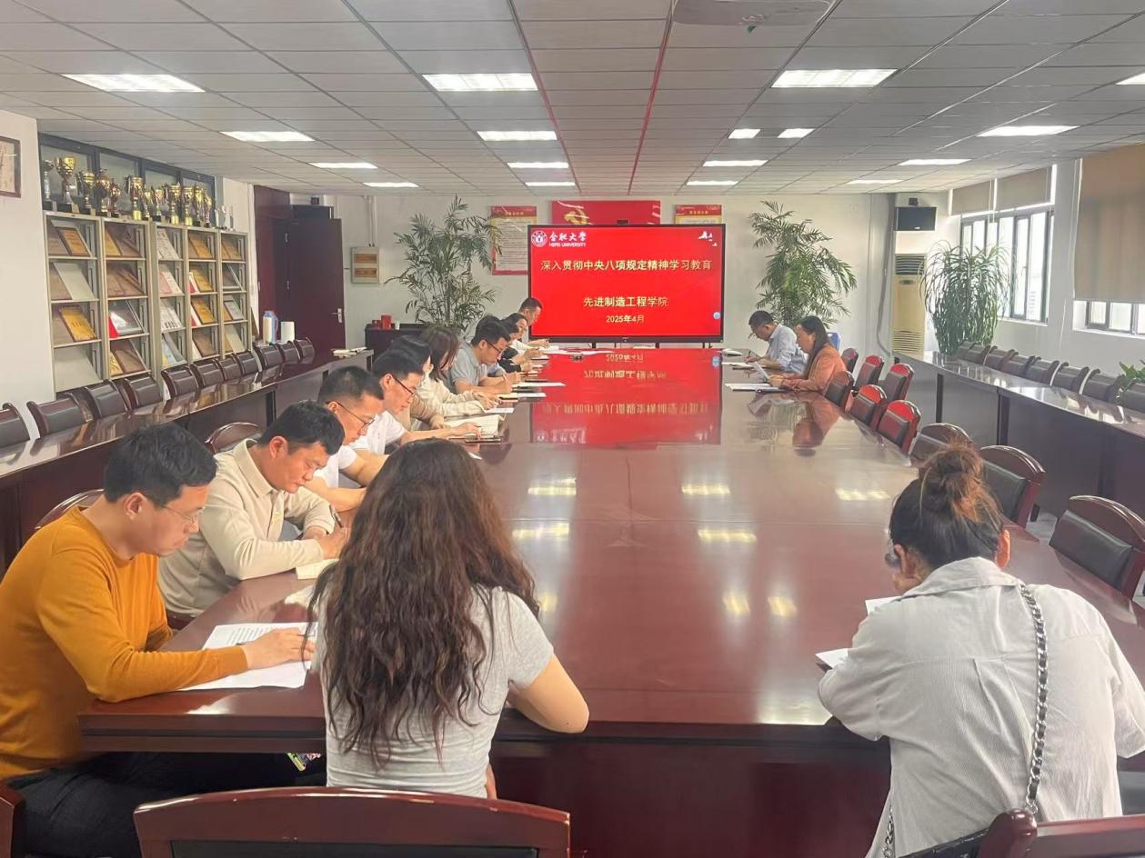 2025年4月15日,先进制造工程学院组织召开深入贯彻中央八项规定精神学习教育学习研讨会,学院党委委员、各党支部书记参与会议,会议由学院党委书记杜娟主持。