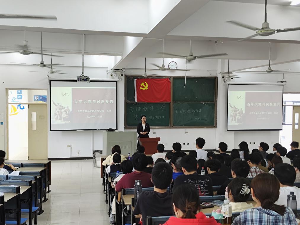 2025年4月27日中午,先进制造工程学院分党校第十期入党积极分子培训班第三次理论授课于38栋3阶梯教室举行,本次党课由马克思主义学院副院长、马克思主义学院直属党支部书记苏冰教授进行授课,培训班共116名参加了本次授课,党课主题为“百年大党与民族复兴”。