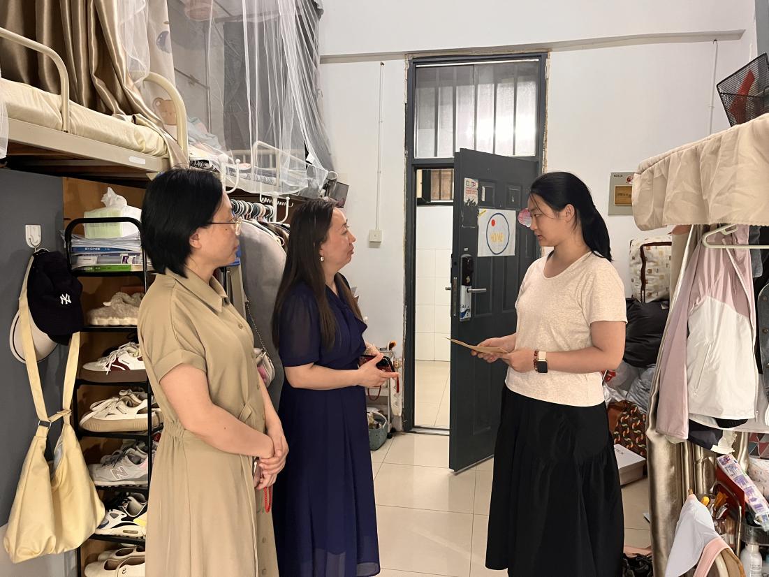 杜娟、蔡灵美以及宋晨迪老师来到困难党员宿舍,了解们的生活、学习状况和家庭情况,希望们能牢记党的初心使命,继续发挥党员的先锋模范作用,以自身实际行动践行党的宗旨。此外,杜娟详细了解了困难党员在生活上的困难,并表示有任何困难一定要及时向组织提出。