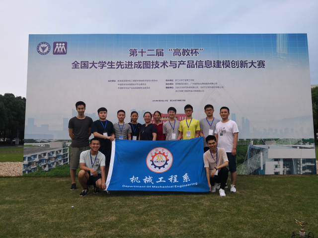 2019年7月20至22日,在浙江大学宁波理工学院举行的第十二届“高教杯”全国大学生先进成图技术与产品信息建模创新大赛上,我校机械工程系再获佳绩!机械工程系戴永强、汪彧涛、孟超群、杨阳、陶瑞五名参赛选手,凭借扎实的专业技能和沉着冷静的赛场应变能力,荣获尺规绘图类一等奖一项,二等奖一项,三等奖一项;计算机建模类二等奖一项,三等奖三项;3D打印类三等奖一项;团体二等奖的优异成绩。