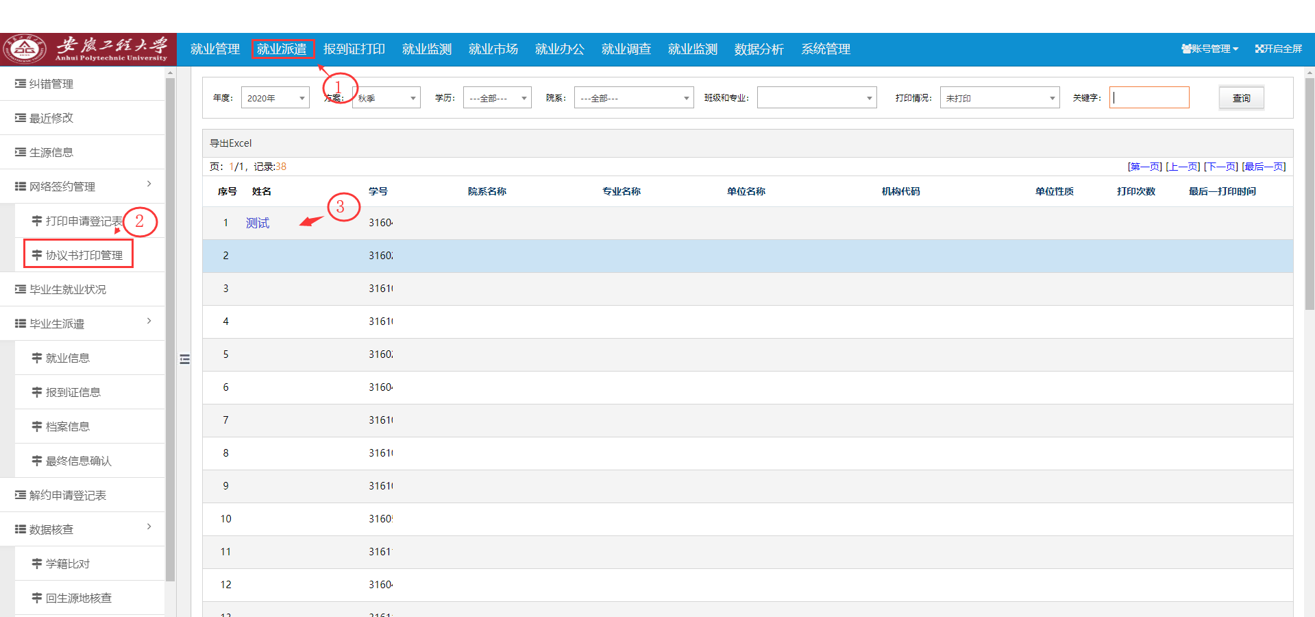 2. 如果学生选择回生源地的,也请学生跟企业沟通好,辅导员系统审核后直接打印出协议书,维护好系统就业数据并交给就业中心;