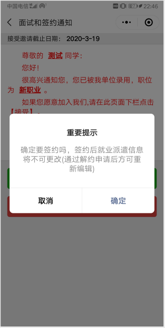 第五步、毕业生收到签约通知,并选择是否接受面试邀请。