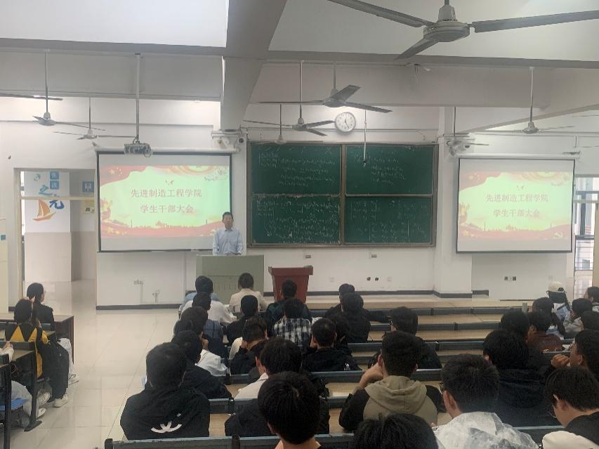 为进一步强化学生干部责任意识,凝聚班级管理合力,推动学院学风建设与安全工作落地见效,10 月 16 日,先进制造工程学院在38栋阶梯教室召开全院学生干部大会。会议由院党委副书记蔡灵美主持,院党委书记宣跃文出席会议,全体辅导员和各班班长、学习委员、团支书、思政委员、心理委员等学生干部参会。