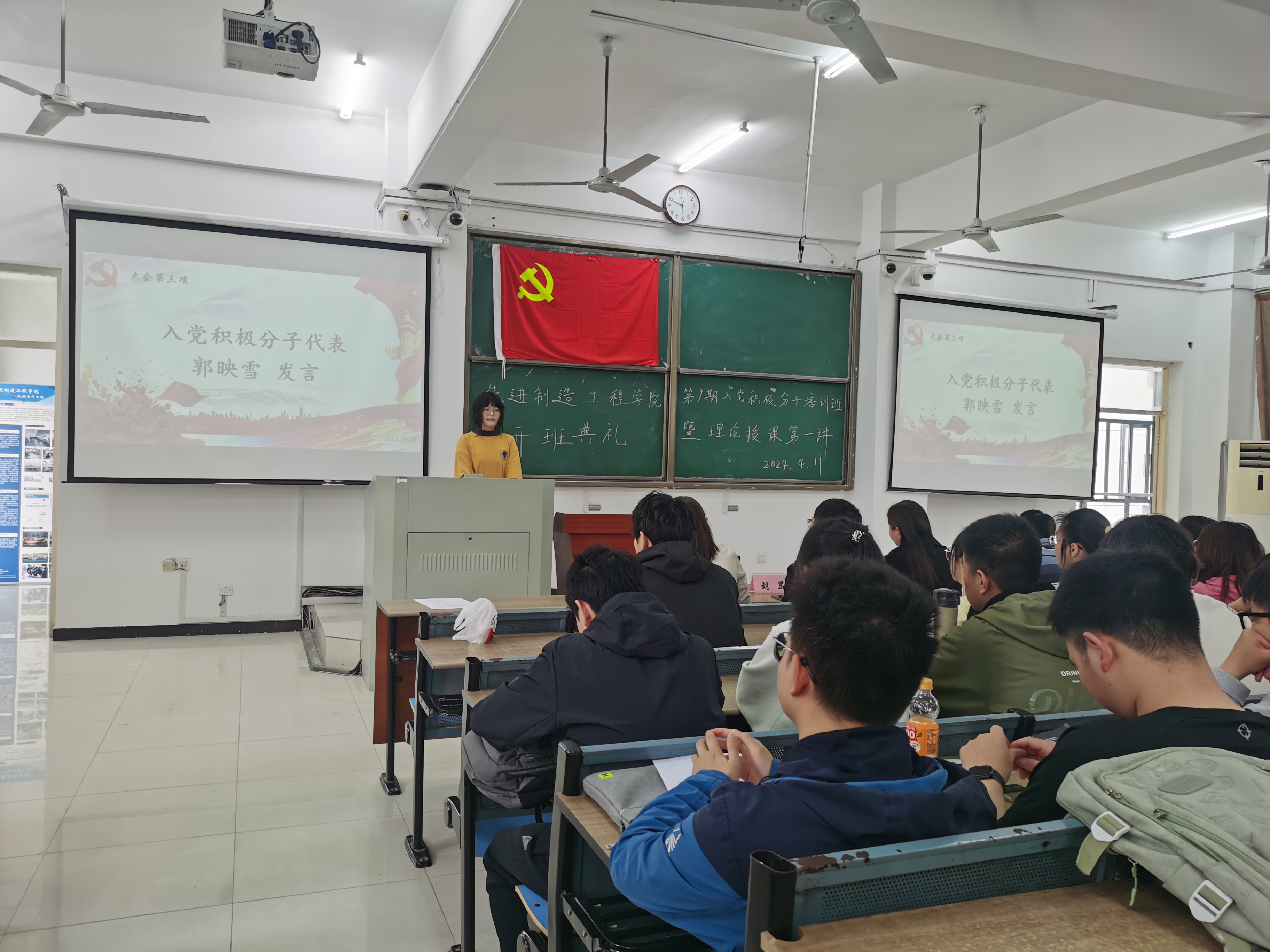 2023级机制1班郭映雪同学作为入党积极分子代表发言。她分享了自己对党的认识,回顾了中国共产党的百年光辉历程,并号召全体入党积极分子在党校学习期间,端正入党动机,明确学习目的,珍惜学习机会,争取加入党组织。