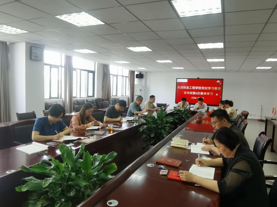 2024年5月28日上午,先进制造工程学院党委在学院40#305会议室开展党纪学习教育读书班第六次集体学习,全体班子成员、科级干部及学院各支部书记参加读书班。