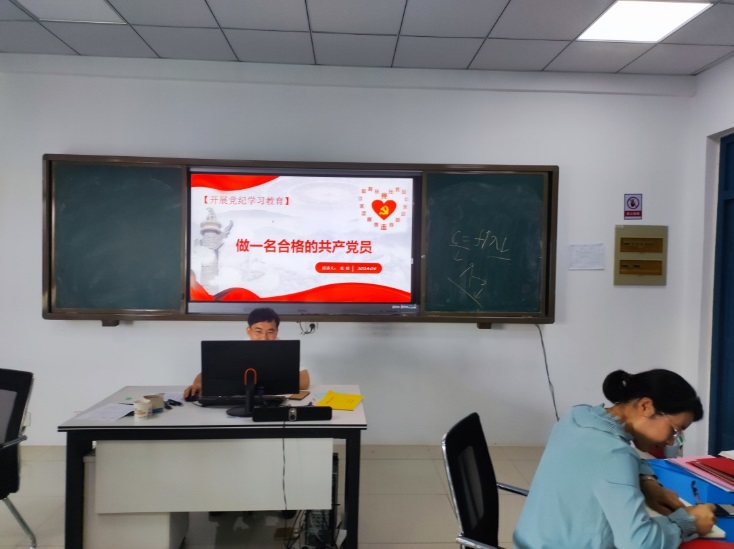 为学习贯彻习近平新时代中国特色社会主义思想,推进党纪学习教育,电子信息工程系教工党支部不断深化《中国共产党纪律处分条例》学习。2024年5月21日在38栋608室,电子信息工程系教工党支部书记张胜同志以“做一名合格的共产党员”为主题讲党课,号召支部党员以优秀为榜样,做一名合格的共产党员。