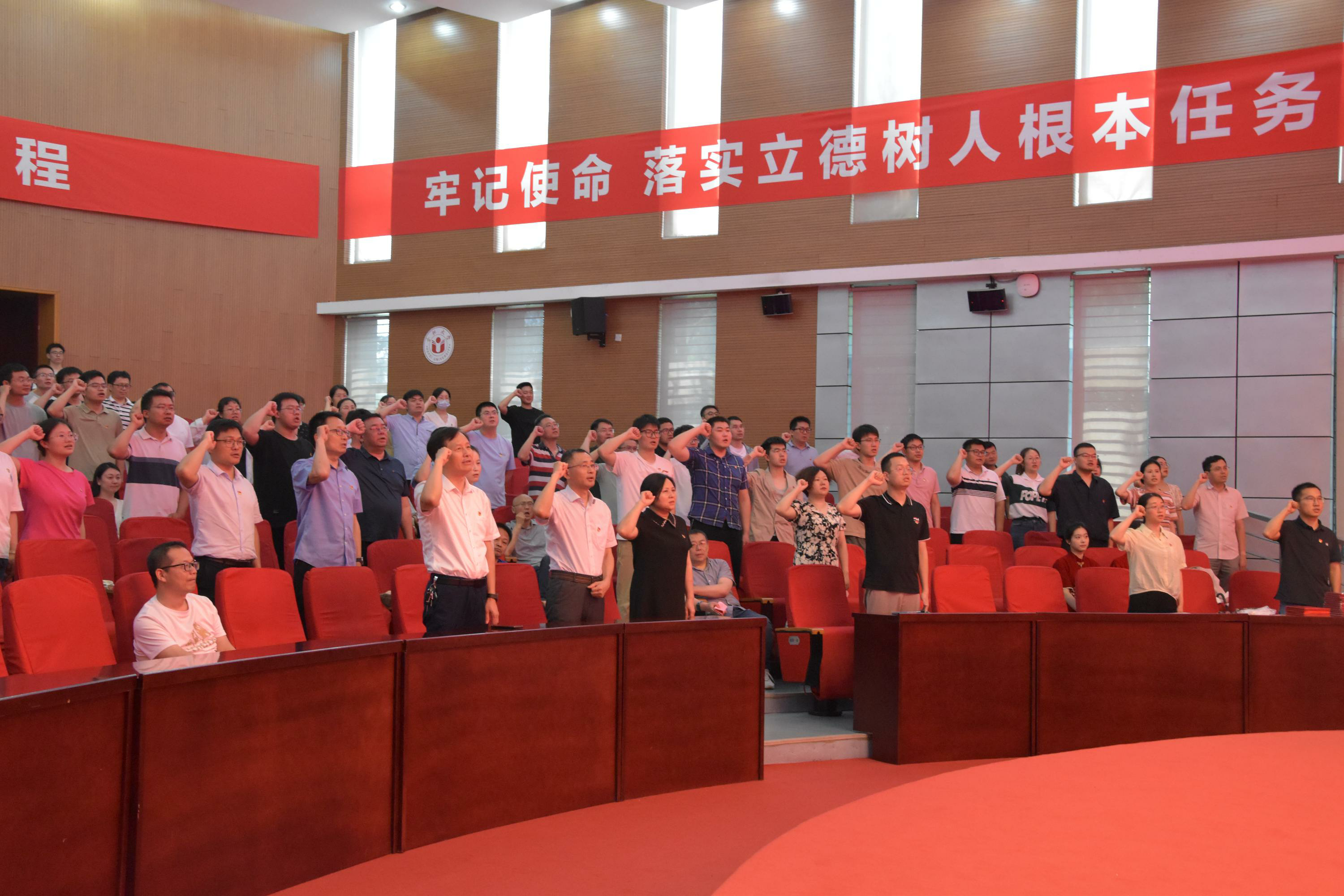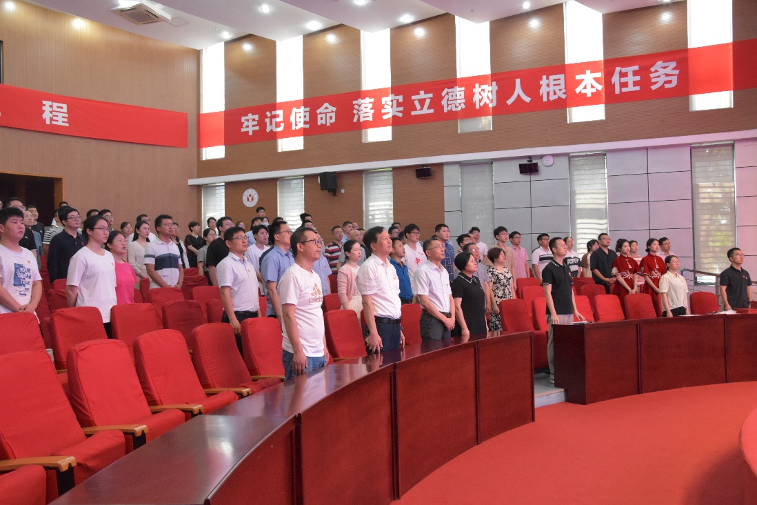 最后,杜娟代表学院党委向全院师生党员同志们致以节日的问候,向受到表彰的先进集体和优秀个人表示祝贺。胡学友希望全院广大党员要以先进为榜样,掀起学习先进、争当先进的热潮,以更加奋发有为的精神状态,积极参与到学院事业发展和各项建设中来,把立德树人作为根本任务,扎根岗位、积极工作,为学校全面建设一流应用型本科高校贡献智慧和力量。