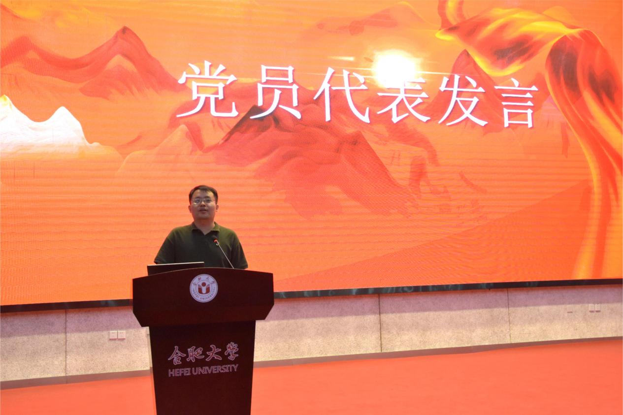 自动化系教研室陈克琼同志和智能制造工程系金飞翔同志分别作为优秀共产党员代表上台进行了发言。他们分享了在强化党性修养、提升思想引领、发挥先锋作用、服务人才培养等方面的心得体会,生动彰显了新时代中国共产党人的政治品格、价值追求、精神风范和责任担当。