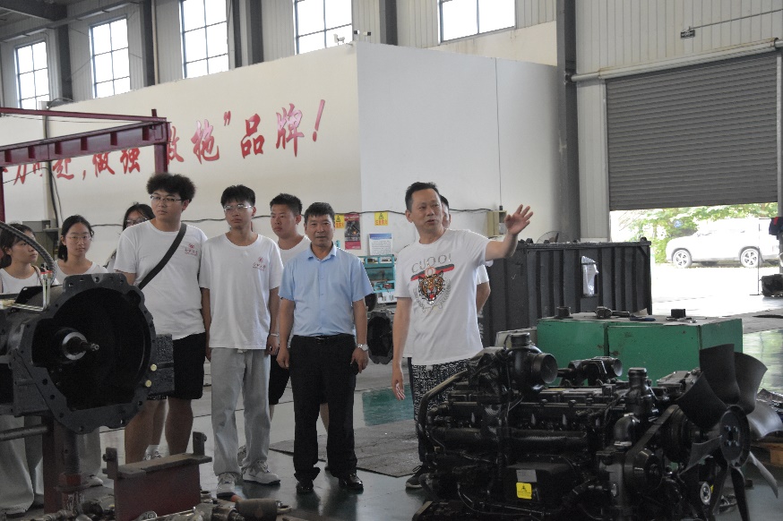 上午,实践团队分为两组行动。一支队伍于8点前往安徽泗州拖拉机制造有限公司开展调研活动。公司朱总为团队成员介绍了当地拖拉机制造产业的发展状况、产业发展所面临的困境以及拖拉机制造产业发展的必要性,并表达了对新一代的殷切期望。