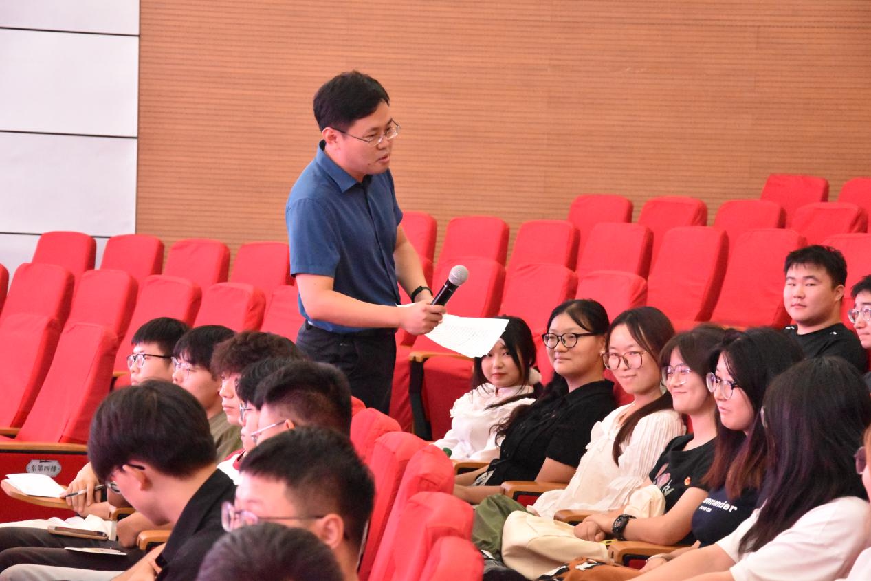 课程伊始,院团委副书记钟伦锁上台致辞。随后洪欣书记进行授课,授课过程中,洪欣书记向学员们介绍党的二十届三中全会的背景、意义,并下台互动,青马班成员积极回应,分享学习经验与活动感受。最后,洪欣书记希望同学们铸牢政治品德,把握时代主题,聚焦主责主业,切实发挥团员“先锋队、突击队”作用,勇于担当、敢于创新。
