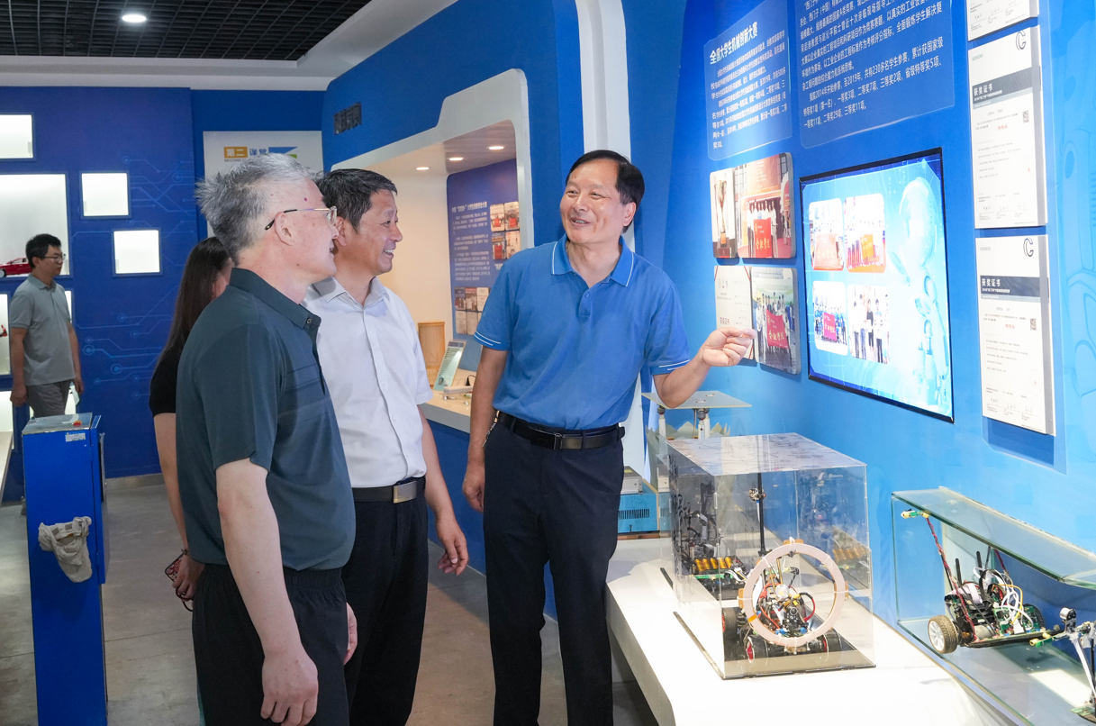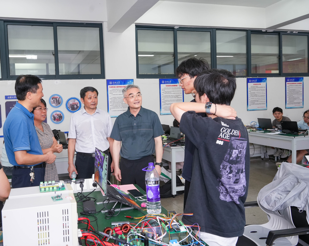 7月25日上午,校党委书记邬平川、校党委委员、副校长白义香一行冒着酷暑走访看望我院暑假期间留校参加学科竞赛的集训队师生。 在先进制造工程学院大学生工程实践与创新教育中心创新创业实训室、智能控制实训室,邬平川亲切看望了备赛2025年全国大学生电子设计竞赛、第二十届全国大学生智能车竞赛的指导教师及学生。 邬平川察看了电子爱好者协会学生科创竞赛开展情况,听取了电子爱好者协会比赛成果和创新模式、全国电子设计竞赛备赛状态、全国大学生智能车竞赛赛事准备等情况介绍,详细了解了暑期集训、参赛备赛情况及学习生活情况,观摩了备赛学生现场演示智能车赛道竞逐。 邬平川对师生不惧酷暑、辛勤付出、专心备赛给予了充分肯定,对第二课堂在创新创业教育中发挥的重要作用表示高度认可。他希望大家高度重视参赛机会,充分利用暑期宝贵时间,全力以赴、攻坚克难,在备赛中积累宝贵经验,在竞赛中提升综合素养,真正做到“以赛促学、以赛促训、以赛促教”,并叮嘱大家注意防暑降温,劳逸结合,平安备赛,勇创佳绩。 校党政办、学工部、后勤集团等相关职能部门及先进制造工程学院全体班子成员陪同调研。