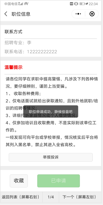 第一步、毕业生登录小程序并完成简历投递