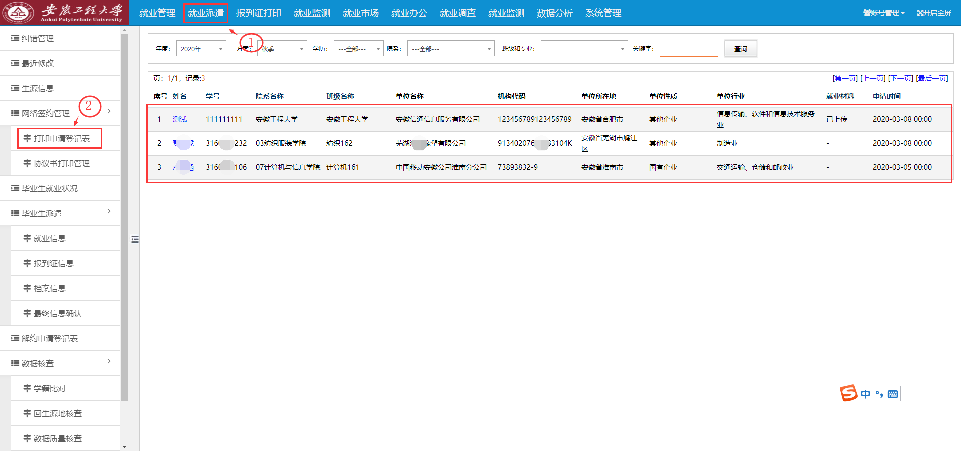 2. 如果学生选择回生源地的,也请学生跟企业沟通好,辅导员系统审核后直接打印出协议书,维护好系统就业数据并交给就业中心;