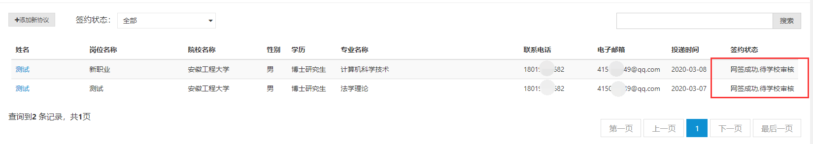 第二步、点击毕业生姓名,查看签约信息
