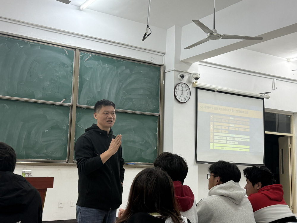 讲座中,企业高管结合电子信息工程专业的行业现状与就业环境,从自身职场经历出发,分享了对自己科技创新背景下市场机遇的思考。他认为同学们应提升专业与职业素养,在大学生活中不断培养自身专业能力,并鼓励大家结合兴趣与优势,明确适配的职业方向,度过有意义的大学生活。