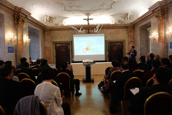 In the following report session, Dr. Cai Jingmin, Chair of HFU Council, elaborates the development, status quo and trend of China’s applied colleges and universities on behalf of Chinese delegation, who hopes to take advantage of the seminar as a sustainable platform for the applied education in the international scale. Professor Eva Werner, president of IMC University of Applied Sciences Krems introduces the characteristics and quality assurance of applied higher education in Austria. Representatives of the Austrian academic exchange center(OeAD) introduce the international exchange projects of higher education and scientific research in Austria and look forward to the participation of applied universities of both countries.