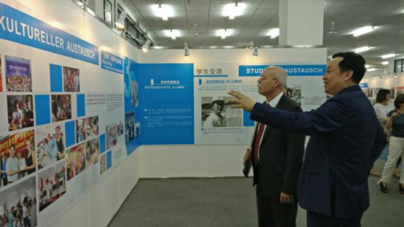The two parties visit HFU’s Sino-German Cooperation Achievement Exhibition. Chair Cai states that HFU is a local undergraduate university born in the Reform, growing in the Opening-up and developing in innovation, which has proposed its school-running orientation of “locality, application and internationalization” ever since 2003. Learning from the German universities of applied sciences, HFU not only promotes its own development, but also plays a leading role in the transformation and development among domestic local universities.