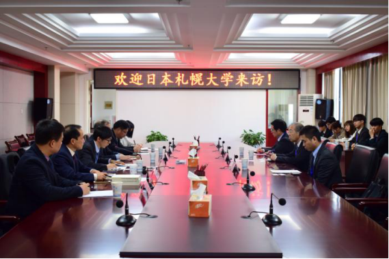 On November 28th,  HFU President Wang Qidong meets the Sapporo University delegation led by its President Mr. Hiroki Arakawa.