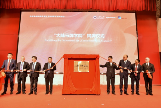 On October 22, 2025, the celebration marking the 40th anniversary of the joint establishment of Hefei University(HFU) by China and Germany, as well as the 10th anniversary of the dual-system “Continental Class” program was held at Hefei University. Luo Yunfeng, Mayor of Hefei City, Wang Xiaoji, General Manager of Continental Tires (China) Co., Ltd., and HFU principals attended the event, who jointly signed the agreement and unveiled the plaque for the Continental Tires Academy.