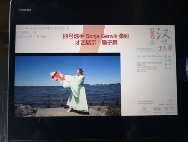 On June 20th, the German Division Final of the 13th Chinese Bridge-Chinese Proficiency Competition for Foreign High School Students concluded, in which Sonya, a contestant from Stralsund Confucius Institute, wins the third place.