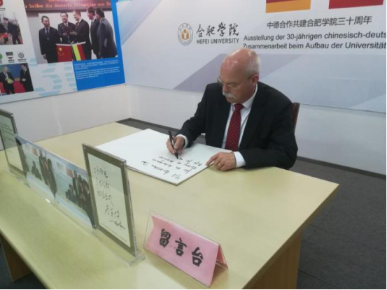 Dr. Clemens von Goetze, German Ambassador to China, visits HFU on July 8, 2019. Dr. Cai Jingmin, Chair of HFU Council and Dr. Wang Qidong, President of HFU, warmly welcome him and his delegation.