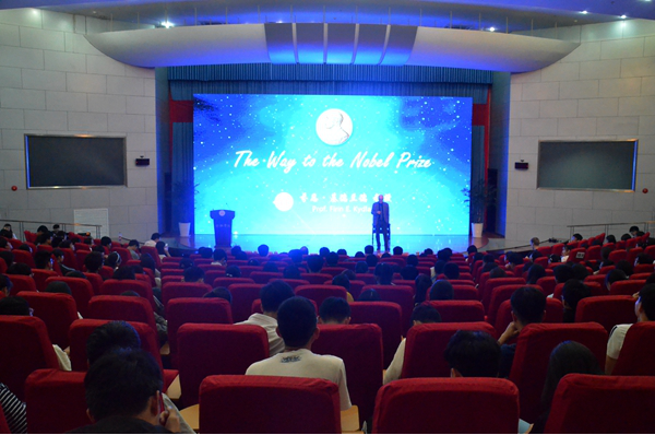 On April 21st, FinnE.Kydland, the Nobel Economics Prize Winner(2004) visits HFU and gives a lecture on “The way to the Nobel Prize”. Finn E.Kydland, a Norwegian economist, won the Nobel Prize together with Edward Prescott in 2004 for his accomplishments in dynamic macro-economics. Currently, he is a professor at Carnegie-Mellon University and the University of California(Santa Barbara), and an associate researcher at the Duras and the Cleveland Reserve Bank. His research mainly focuses on business cycling term, currency, fiscal policy and labor economics. Dr. Cai Jingmin, Chair of HFU Council, and Dr. Wang Qidong,president of HFU entitled him “HFU Honorary Professor”. Professor Kydland says the distinctive characteristics and development potential of HFU impresses him much and he expects to cooperate with HFU in the future. After the lecture, Professor Kydland exchanged opinions with HFU teachers especially on economics. | | |