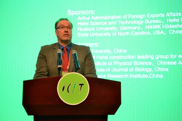 大会主席、中国政府友谊奖获得者、德国生物质研究中心主任、德国罗斯托克大学教授莱勒斯在讲话中表示,罗斯托克大学与合肥学院在科教创新、学生交流等方面取得良好效果,期待能与我校在更多领域开展交流合作,同时,中德环境技术与知识转化中心自2005年在合肥学院成立以来取得的诸多成果将在会议中展示。他指出,安徽是中国最具发展潜力的省份之一,在高速发展经济的同时应不忘保护环境,做到环境的可持续发展与经济的长足发展相统一。