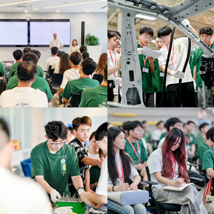 今年暑期,80余名来自双元制大众班(数据科学与大数据技术、智能制造工程和无机非金属材料工程专业)的大二学生,深入企业现场开展了为期2周的认知实习活动。活动得到了大众集团的大力支持,近80名企业工程师参与其中,指导学生完成了汽车制造工艺培训、车间参观、报废汽车拆解培训与实践、数字化转型与A+工厂、电池系统测试实践和精益生产培训等多个主题的理论与实训课程。