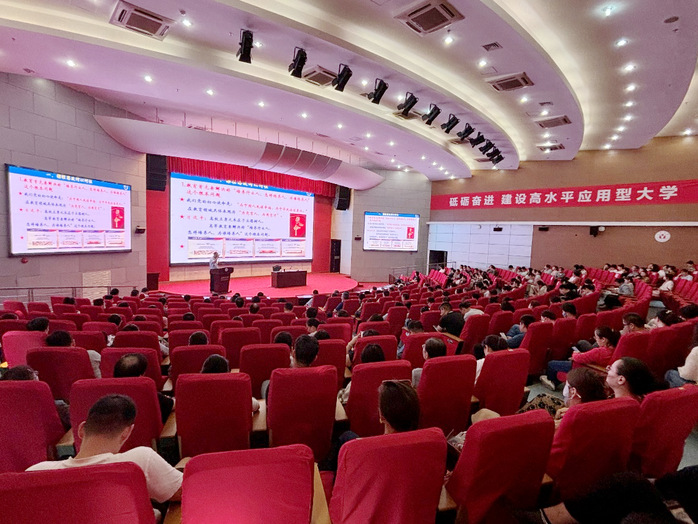 为学习贯彻党的二十届三中全会精神,落实立德树人根本任务,提升教师课程思政建设水平,9月26日,我校特邀南京信息工程大学原党委副书记、副校长(正校级)王尧作课程思政专题培训会。会议由校党委委员、教务处处长王晓峰主持,学校200余名教师参会学习。