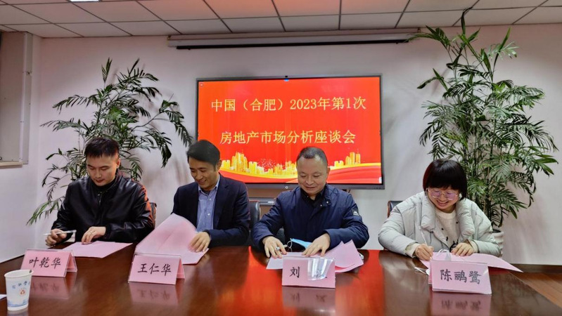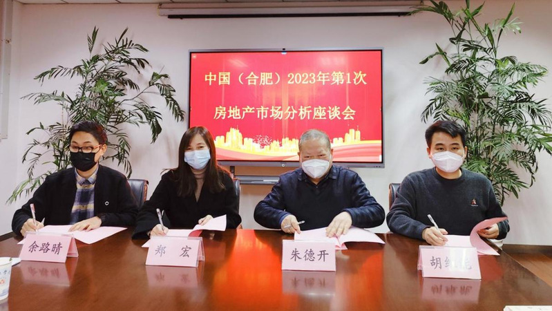合作协议签订后,举行了中国(合肥)2023年第1次房地产市场分析座谈会,各单位分别在会上作了精彩的发言。