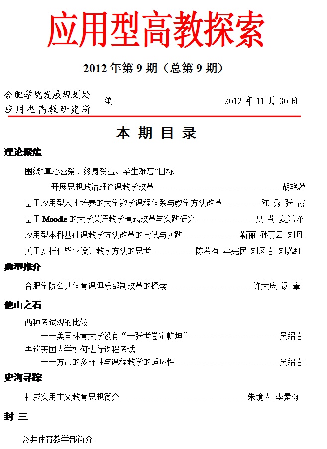 应用型高教探索9 期以公共课教学改革和课程考核方式改革为主题组稿,目录如下,具体内容请查阅发展规划处网站,并将您的宝贵意见或建议反馈至我处。