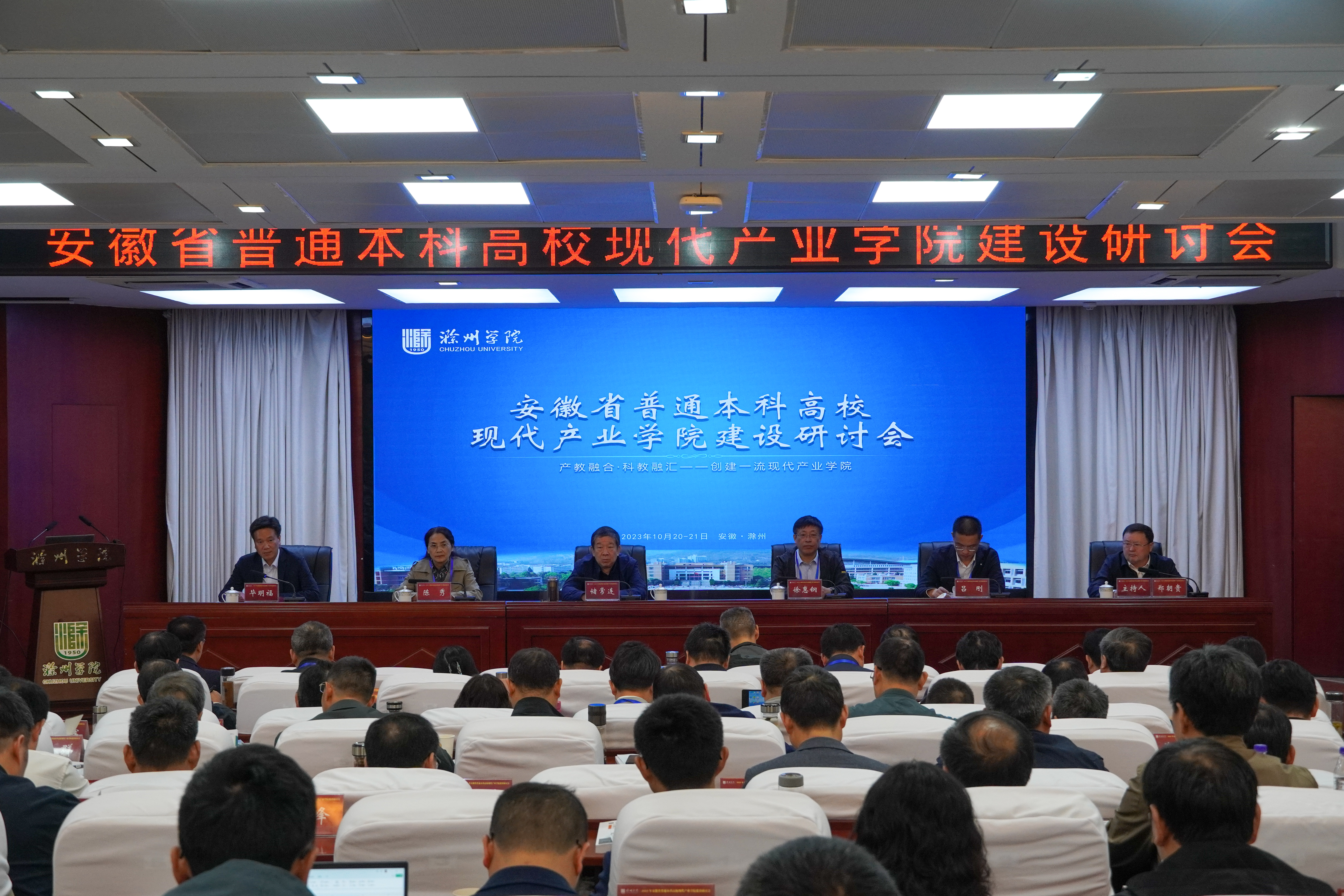 1021日,由安徽省应用型本科高校联盟主办,滁州学院、池州学院承办的安徽省普通本科高校现代产业学院建设研讨会在滁州学院隆重召开。省委教育工委委员、省教育厅副厅长储常连,联盟常任主席单位合肥学院副院长陈秀,联盟轮值主席单位池州学院副院长吕刚,滁州学院党委书记毕明福,党委副书记、院长郑朝贵,副校长王春出席会议。省教育厅高教处领导,全省45所本科高校现代产业学院分管校领导及现代产业学院负责人、教务处长、应用型本科高校联盟秘书处工作人员等200余人参加会议。