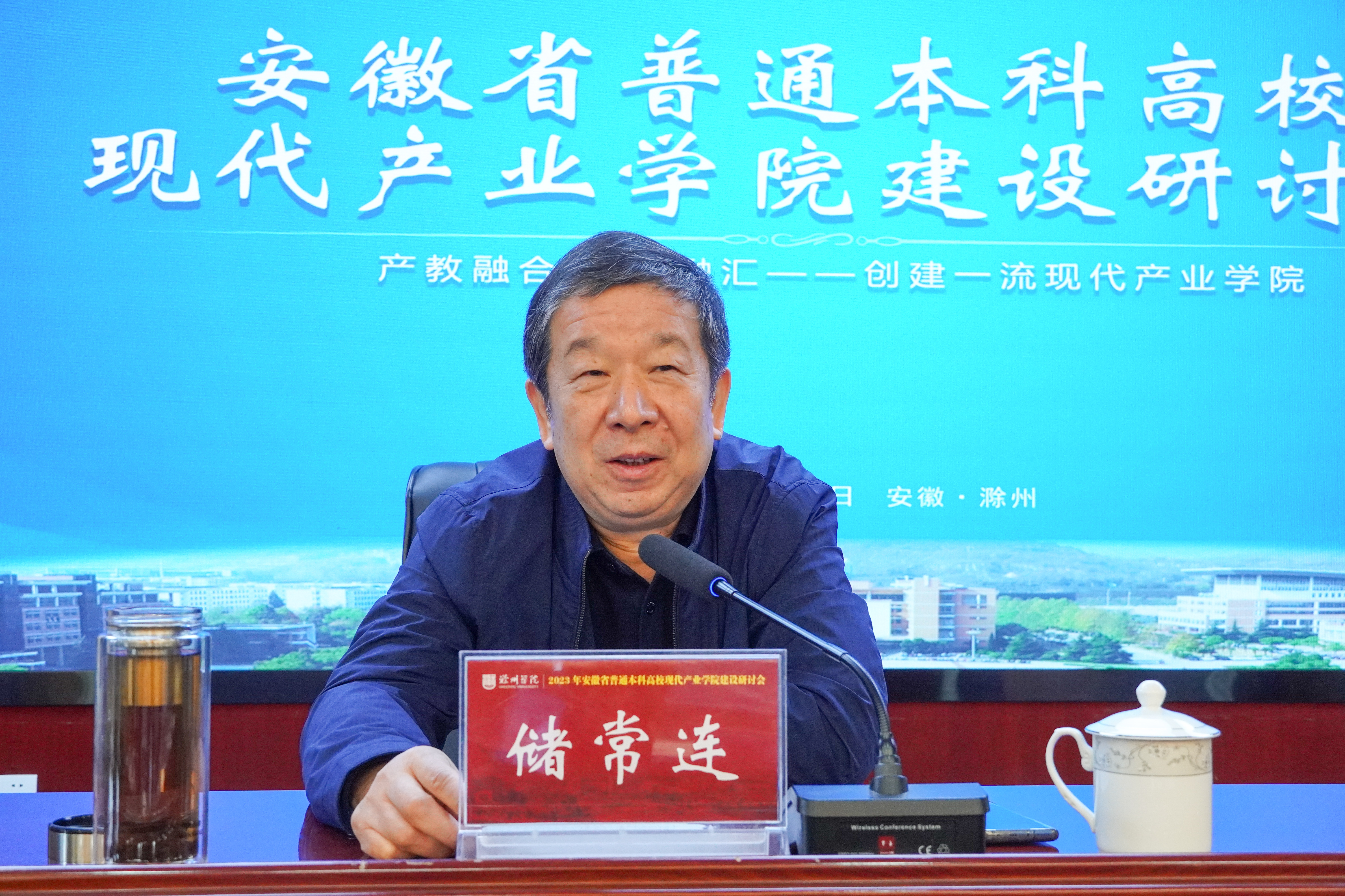 储常连就如何建设现代产业学院,提高应用型人才培养质量,提升我省本科高校办学水平等问题,提出三点要求:一要深入学习,科学分析教育发展趋势。充分认识教育正在由民生向国之大计、党之大计转变,由大向强转变,由适应服务向支撑引领转变,由独立自主发展向统筹融合发展转变,把主题教育成效转化为推动高质量发展的强大动力。二要系统总结,准确把握新建本科高校的发展方位。新建本科院校发展经历了被动转型发展、主动适应发展、引领创新发展三个阶段,要围绕新阶段要求,集中财力、人力、物力,加强内涵建设,强化师资队伍,加强产教融合和对外交流。三要统筹融合,全力推进现代产业学院的创新发展。按照省委省政府部署要求,在开展微专业建设、开发专业人才培养方案、推进课证融通、开展中国特色的学徒制、开展创新创业、打造高水平双能型教师队伍、开发认证证书和制定行业标准、攻克技术工艺难题、开展国际交流合作、加强党的政治建设和思想政治教育等方面共同发力,努力培养更高质量应用型人才,服务产业创新发展,服务美好安徽建设。