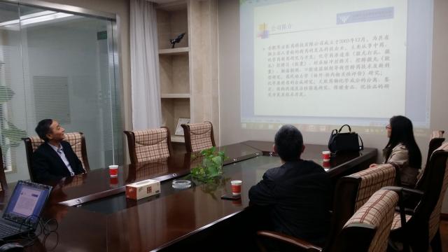 回访过程中,杨本宏主任一行受到该公司总经理吴宗好的热情接待,并安排专人详细介绍了公司的发展历程、运行模式、企业荣誉、科研成果及院士工作站等情况,随后,参观了公司制剂研究室、理化分析室、合成研究室、中药研究室等实验室。杨本宏主任就科技成果产业化、高分子辅料的研发等与吴总经理进行深入探讨,双方均表示应发挥各自长处,加强校企合作。下一步将对双方有可能合作的项目进行梳理,寻求实质性合作。