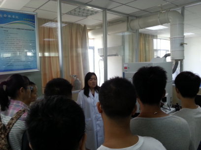 杨本宏主任热烈欢迎同学们的到来,并对每个班级简要介绍了分析测试中心的概况,希望同学们在参观中认识科研环境,在以后的专业学习时重视实验,避免环境污染,采用绿色设计等理念。赵茂俞副主任负责联系、组织协调、现场引导新生参观事宜,并与新生交谈,鼓励大家结合实际电器,认真学好专业知识。徐泽忠老师负责发放中心仪器设备宣传册,以及新生的参观签到,管理新生进入中心。马新兰老师非常生动地介绍了X射线衍射仪的构造和在材料测试领域的应用。陈仕云老师流畅地向同学们讲解紫外一可见分光光谱仪、荧光光谱仪和激光共聚焦显微拉曼光谱仪的构造和主要应用,并耐心解答新生提问。王玮老师热情、认真地介绍了原子吸收光谱仪和ICP-MS的构造和作用,重点介绍了在材料测试方面的应用,并与新生互动。高雅老师熟练、详细地讲解了热分析、差示扫描量热仪,解释可测试金属、塑料材料的热分解、相变和结晶过程