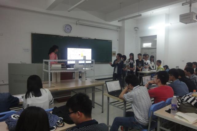 本次决赛有两个环节:作品展示和答辩。第一环节是作品展示,比赛伊始,前几个队伍的成员在向大家展示PPT时,由于没有进入状态,略显紧张。但是随着比赛的进行,他们积极调整,慢慢进入氛围,向大家完美地讲解了自己的工程设计。PPT展示完后是第二环节:答辩环节,由评委提出问题并指出问题所在。在此环节中,第五队各成员之间配合默契并充满自信地回答了评委提出的问题。随着最后一支队伍的答辩结束,比赛也进入了尾声。最令同学们紧张的便是接下来的比赛成绩的公布,最终,第五小队赢得了此次比赛的第一名。