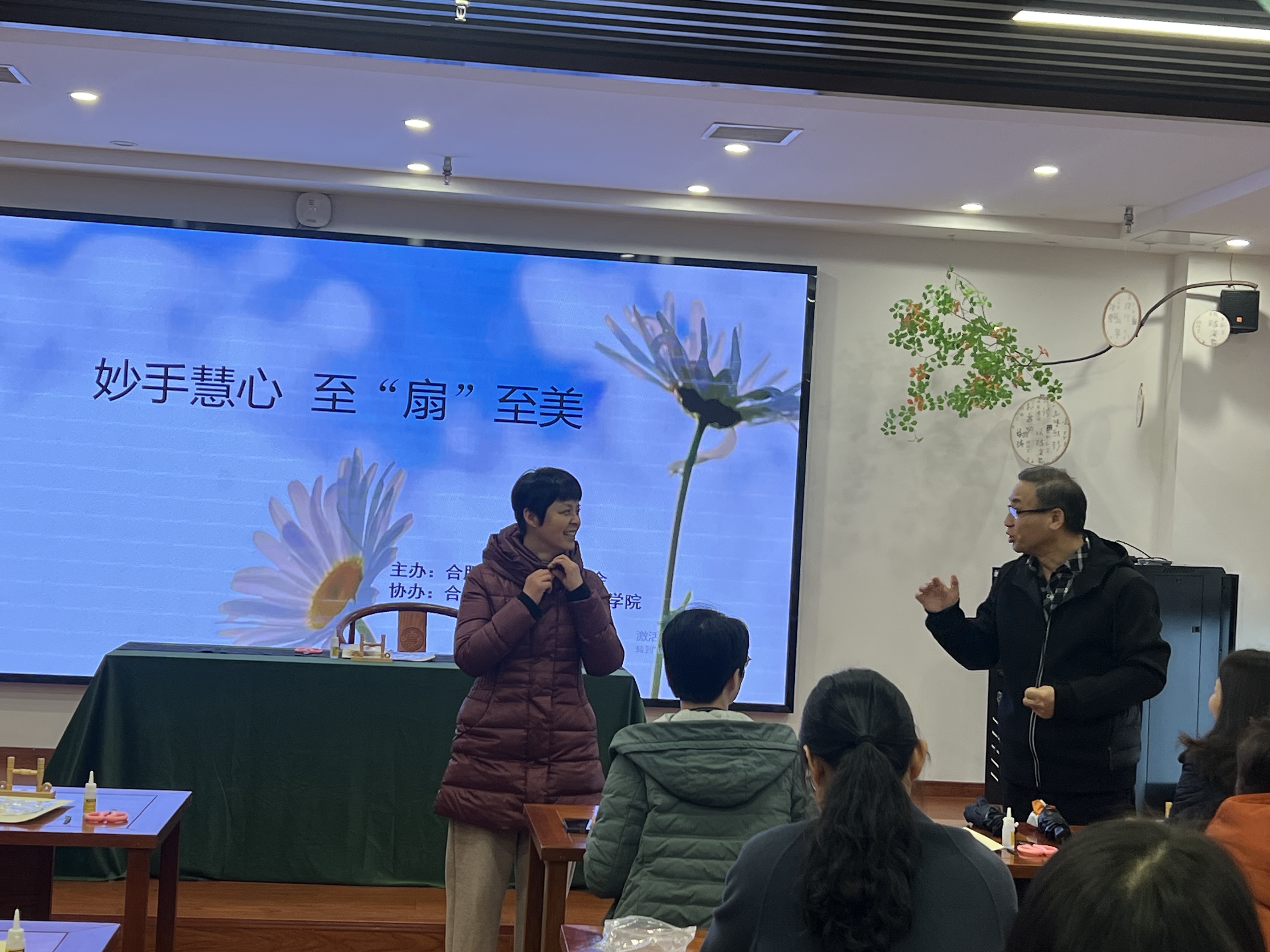 活动从场精彩纷呈的团扇知识科普讲座开始,授课老师以生动专业的讲解方式,深入浅出地介绍了团扇的悠久历史文化、精湛制作工艺以及实用技巧。大家在老师的讲解中,对这一传统工艺品有了更为深入的认识和理解。随后,老师亲自进行制作示范,从扇面的创意设计、色彩的巧妙搭配,到永生花和装饰的精细粘贴技巧,每一个步骤都讲解得细致入微,让大家对团扇制作有了更直观的感受。