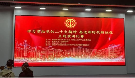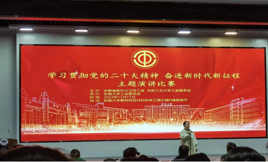 此次演讲比赛由安徽省教科文卫体工会中片片长单位合肥工业大学工会主办、安徽大学工会委员会承办,旨在深入学习贯彻党的二十大精神,使党的路线、方针、政策、思想落细落小落实,继而增强“四个意识”、坚定“四个自信”、做到“两个维护”。在比赛中,中片区工会的广大教职人员将自己的所学所做、所思所想、所感所悟与中国式现代化征程结合起来、与党的百年奋斗历程衔接起来、与为中华民族谋复兴的中国梦融合起来,亮点突出、主题鲜明、思想活跃、态度积极,展现出新时代教职工队伍斗志昂扬、踔厉奋发、拼搏进取的良好精神风貌。
