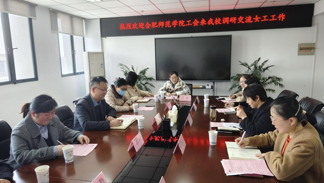 3月21日,合肥师范学院工会主席宋学峰一行6人来校调研女工工作。校工会主席宣文、校女工委委员及工会相关工作人员参加交流会议,会议由校工会主席宣文主持。