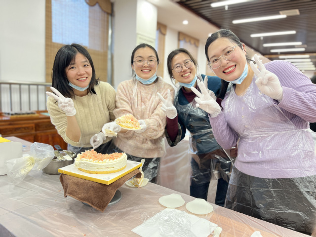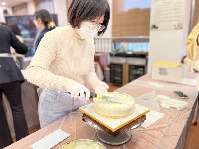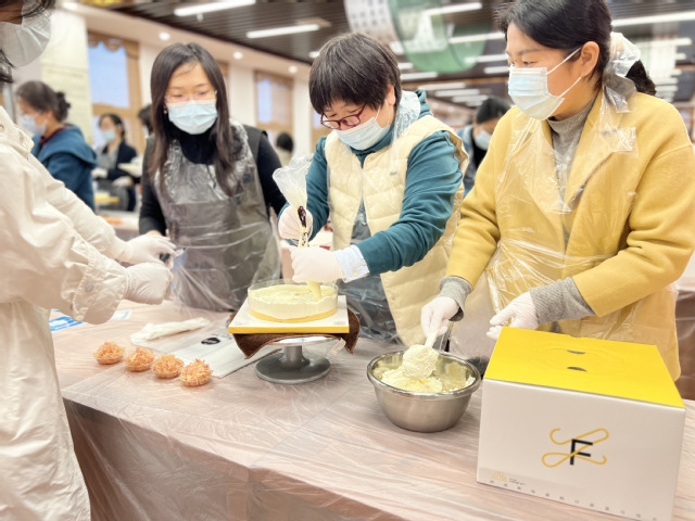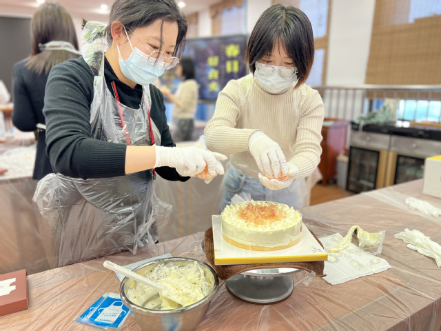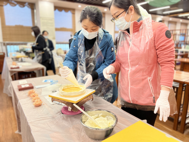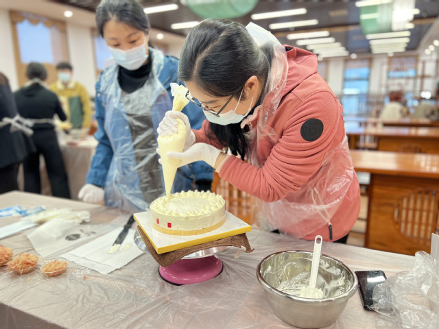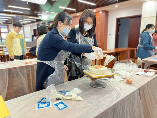 活动现场,糕点师向老师们讲解了蛋糕装饰的步骤,随后,老师们在糕点师的指导下,开始动手装饰蛋糕,在愉悦的氛围中体验到了烘焙的乐趣,也体会到了工匠精神的内涵。蛋糕制作完成之后,老师们一边交流心得和技巧,一边品尝蛋糕,留下了甜蜜温馨的节日记忆。