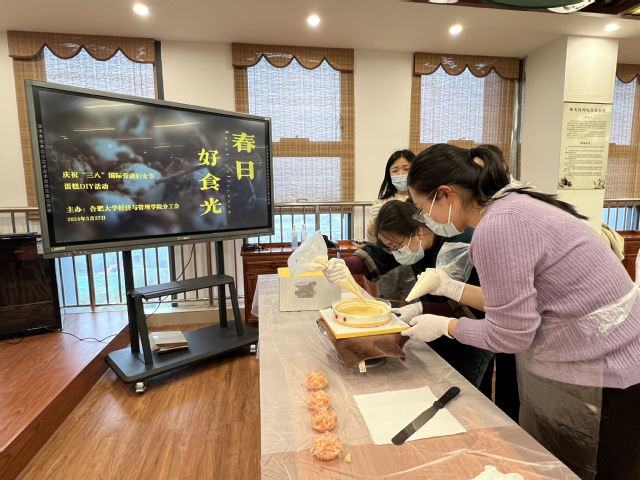 春暖三月,芳华绽放。为庆祝第114个“三八”国际劳动妇女节,丰富女教职工精神文化生活,3月27日中午,经管学院分工会在55栋708茶艺室举办了春日·好食光蛋糕DIY活动,学院二十余名女教师参加。