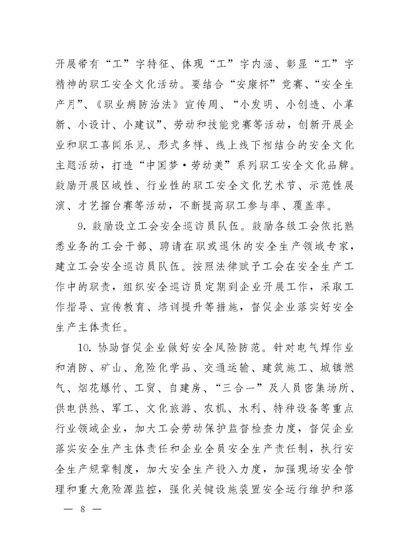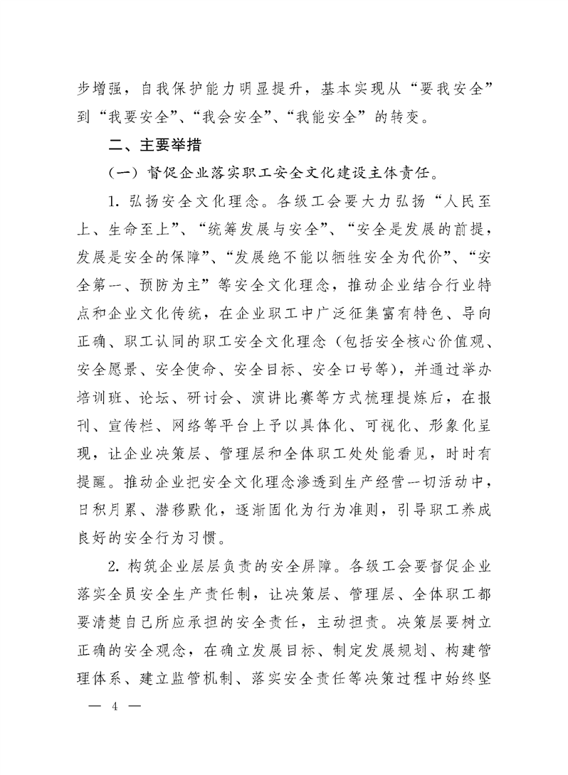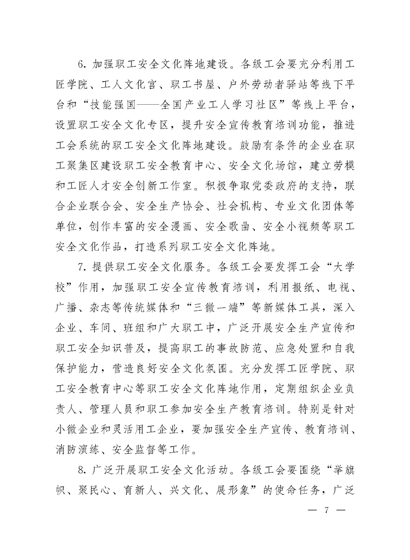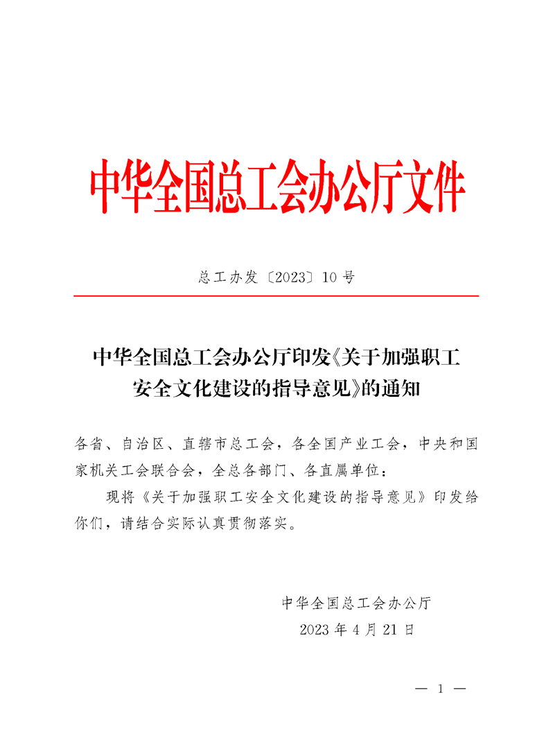 中华全国总工会办公厅印发《关于加强职工安全文化建设的指导意见》的通知