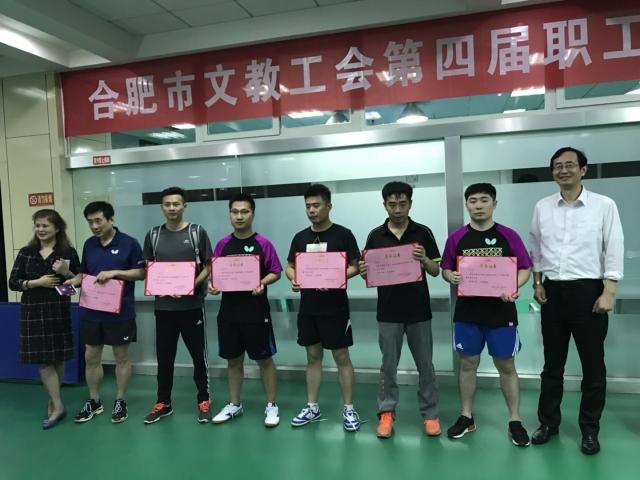 529日,合肥市文教卫系统第四届职工乒乓球比赛在市总工会隆重举行。本次比赛有11支代表队共63名运动员参加。市总工会领导出席了开幕式。经过激烈拼搏,我校教工代表队喜获团体亚军,男单冠军。