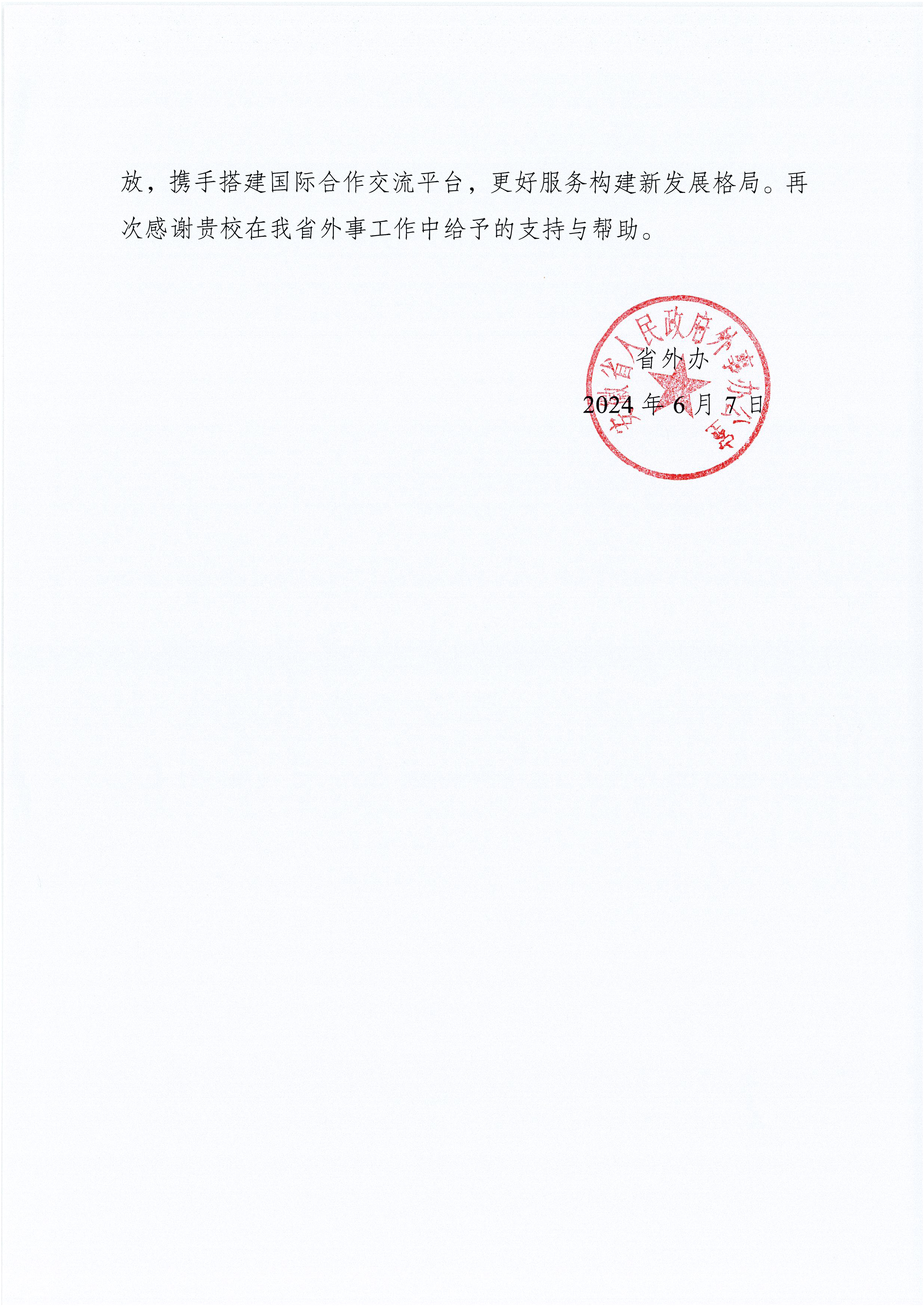 近日,安徽省人民政府外事办公室向我校发来感谢信。